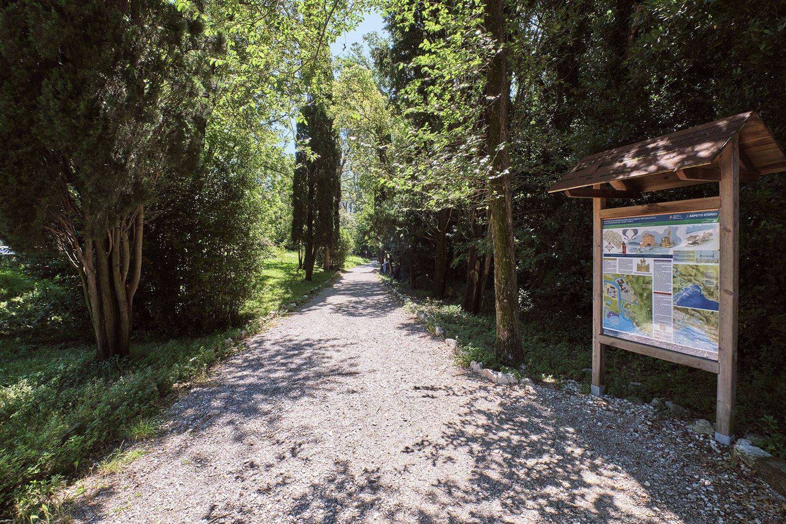 In questo spazio circondato da maestosi cipressi, pioppi e platani il fiume Timavo "risorge" dopo aver percorso 40 km sottoterra.