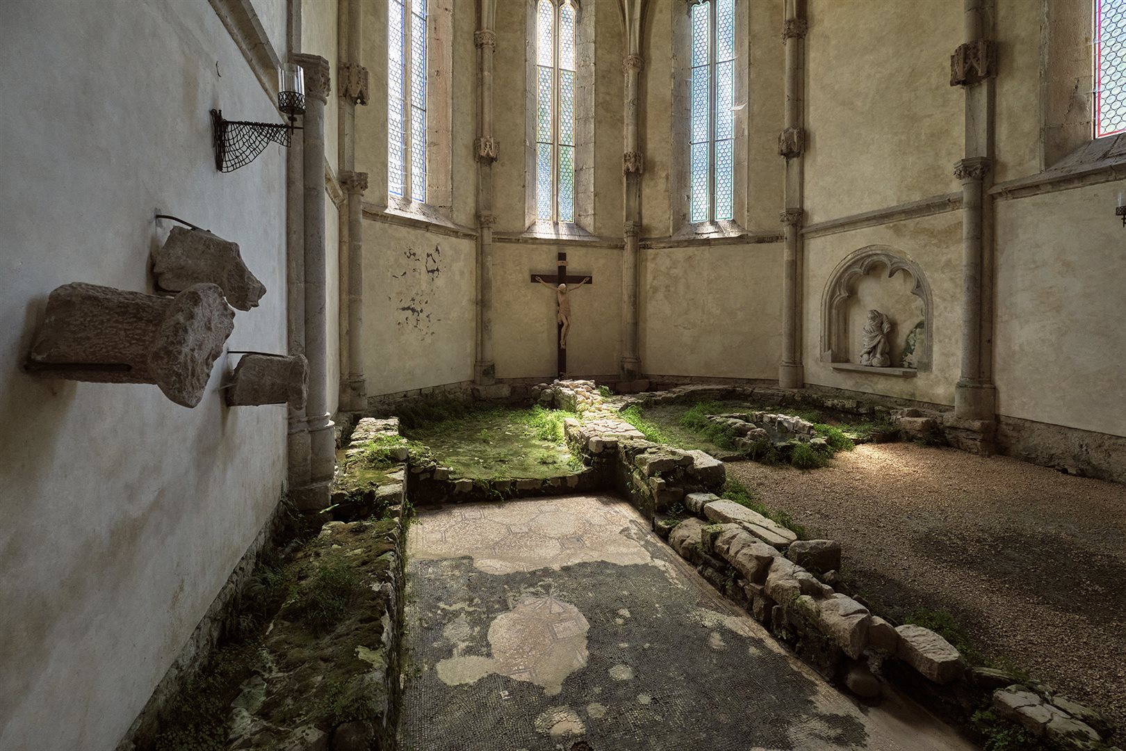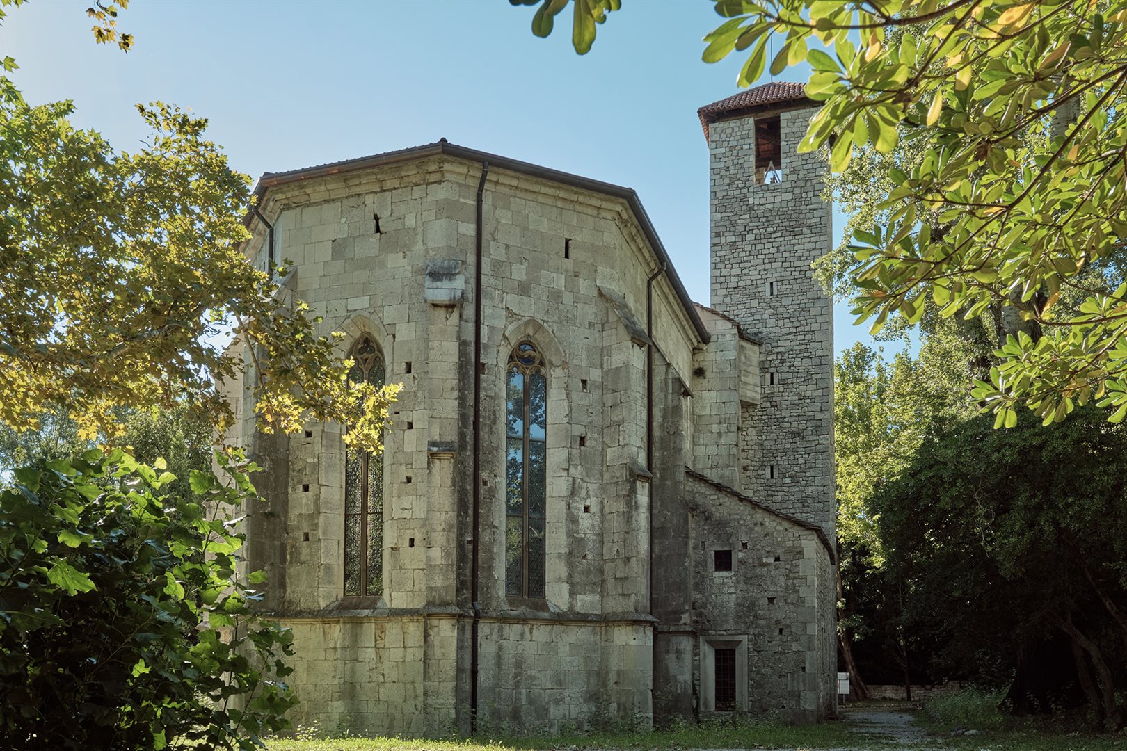 Il cenobio dei Benedettini venne distrutto dagli Avari nel 611. Dopo essere stato ricostruito gli Ungari lo abbatterono nel 902. Ricostruito nuovamente grazie all'interessamento del patriarca di Aquileia Urico I, venne definitivamente distrutto da un'incursione turca.